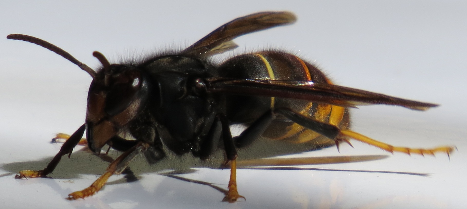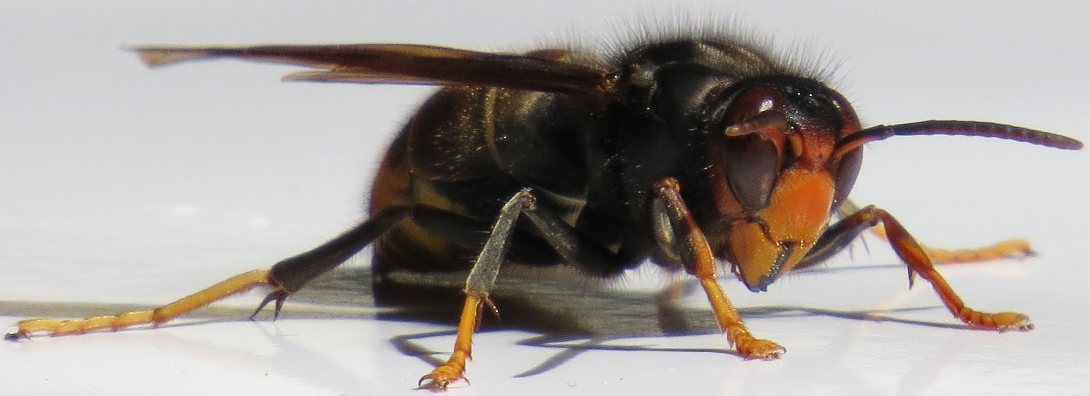 Un frelon mâle: le mâle a 2 points jaunes et pas d'aiguillon